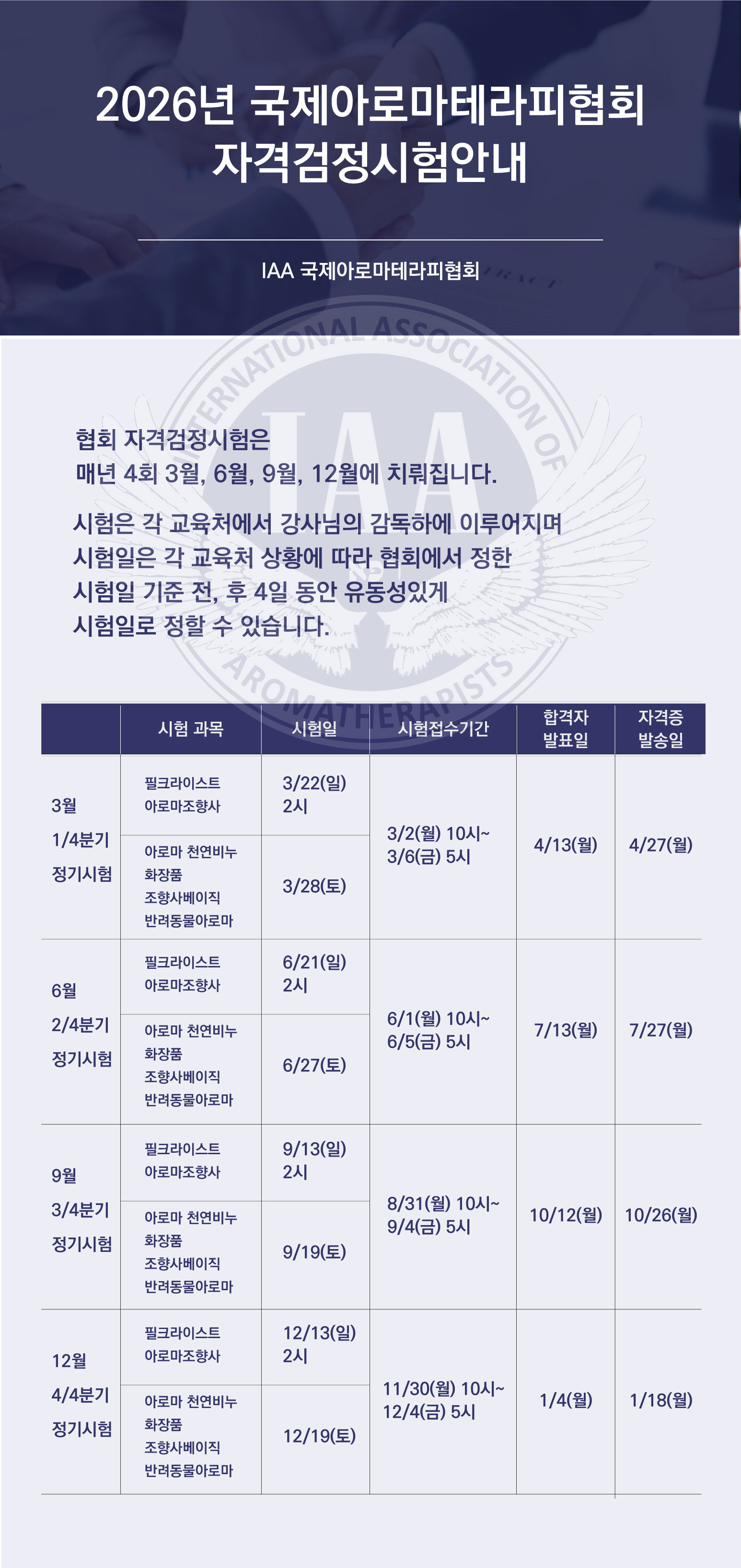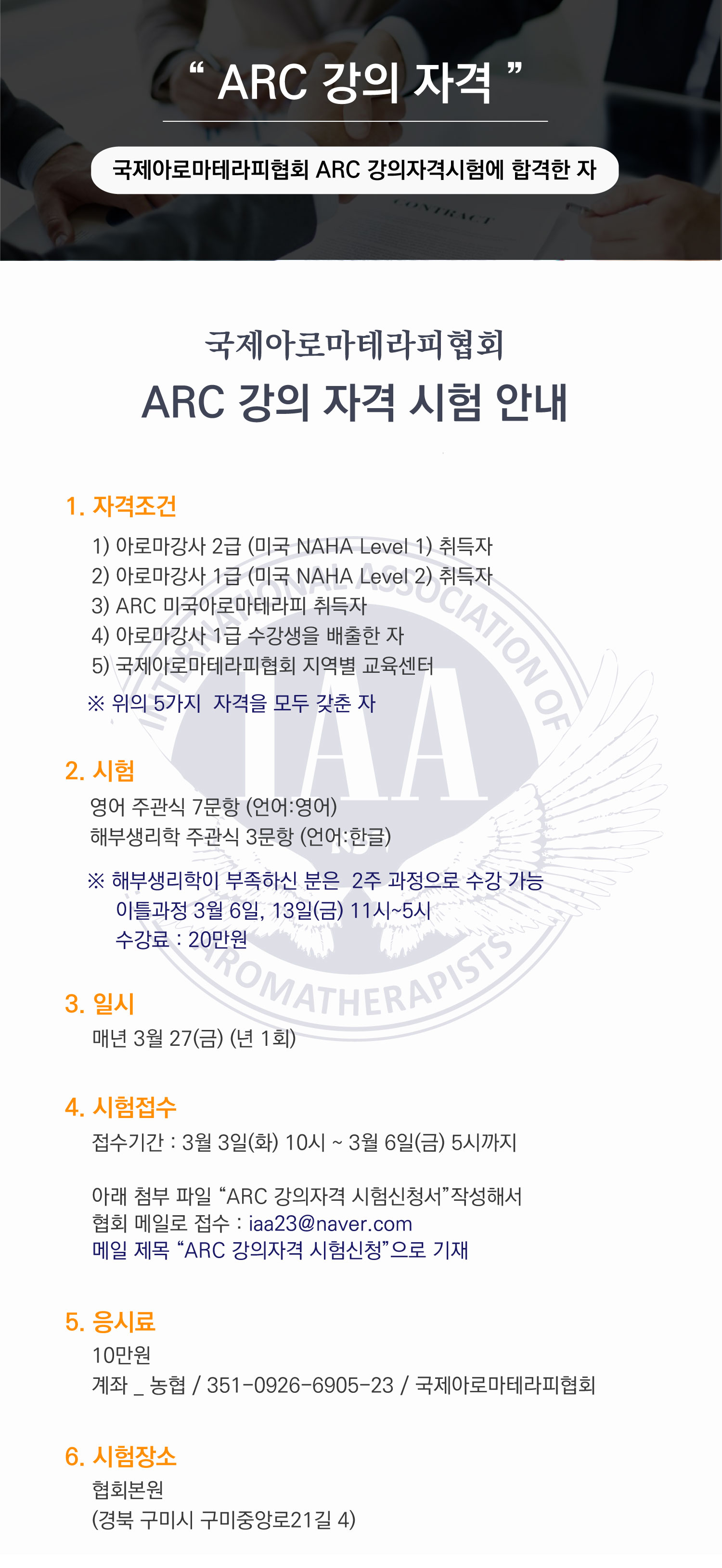 [2026년도 시험 일정] 아로마자격증 & 수석강사 시험 & ARC 강의자격 시험안내 - 국제아로마테라피협회